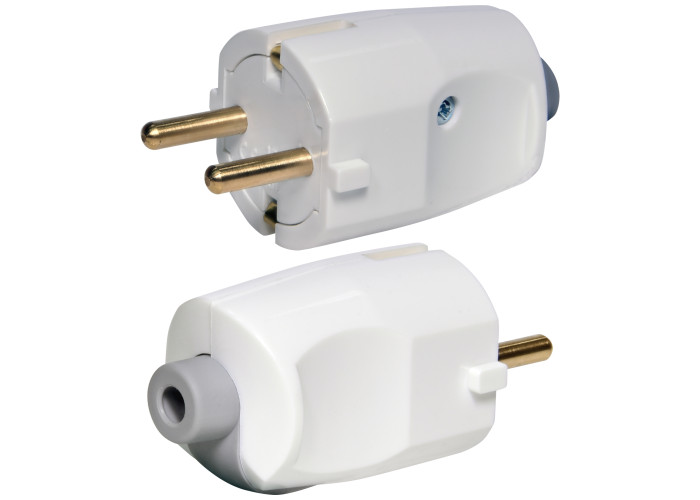 Вилка універсальна PPW-UNI (2Р+РЕ, кутова/пряма, полікарбонат, IP20, біла)