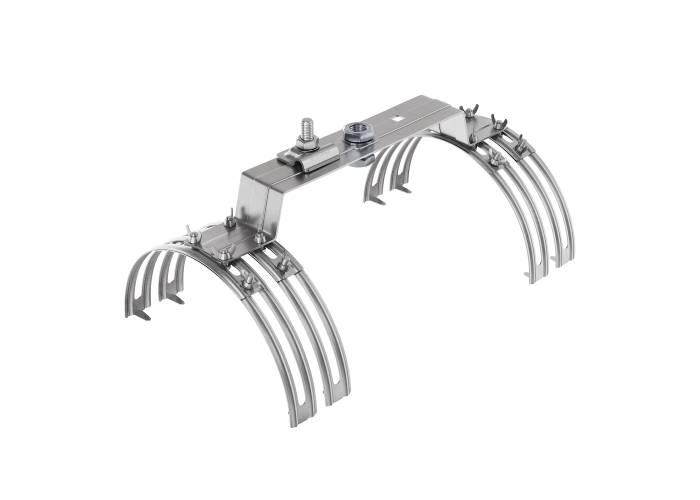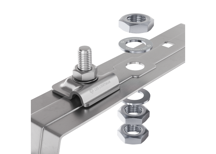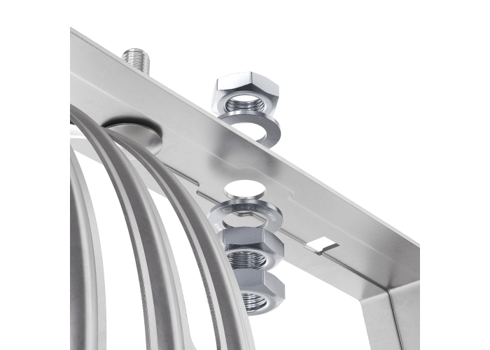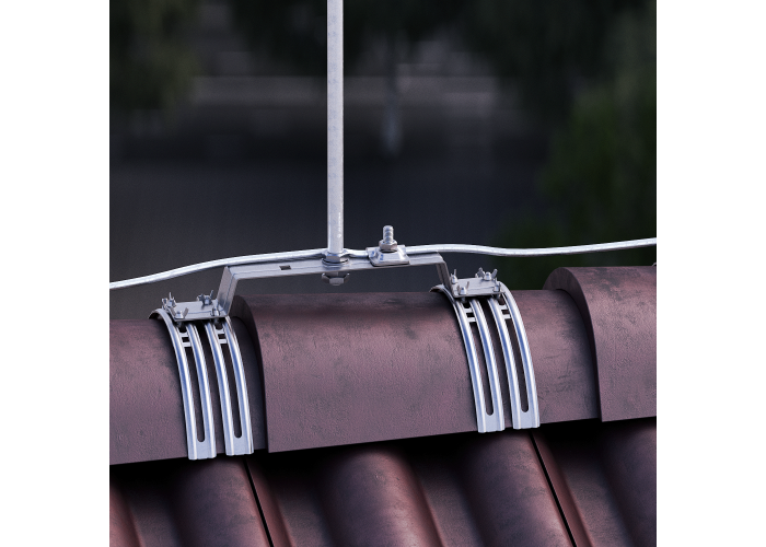 Крепится к гребню крыши без сверления с помощью 4 пар полукруглых пластин.