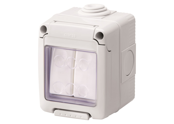 Вимикач прохідний в зборі 2-клавішний 27 COMBI SYSTEM 16А IP55 сірий GEWISS