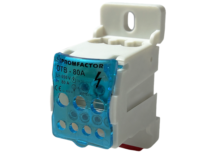 Распределительный клеммный блок используется для электромеханического соединения проводников с большим сечением с несколькими проводниками меньшего сечения. Устанавливаются в распределительных устройствах для распределения фазных, нейтральных и заземляющих проводников
