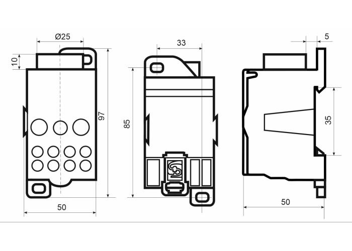 Распределительный клеммный блок используется для электромеханического соединения проводников с большим сечением с несколькими проводниками меньшего сечения. Устанавливаются в распределительных устройствах для распределения фазных, нейтральных и заземляющих проводников