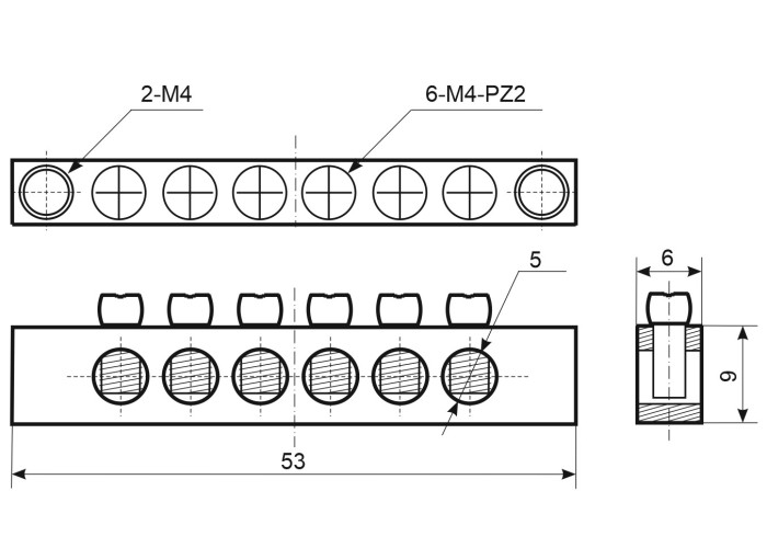Шина нульова SOF506 6x9мм2