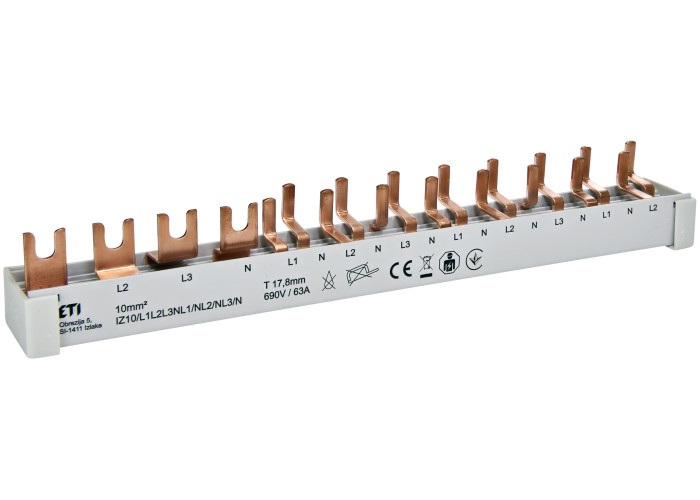 Шина питания IZ 10/L1L2L3NL1/NL2/NL3/N (10мм2, 3P+N, 0.21м, Fork, 12mod.)