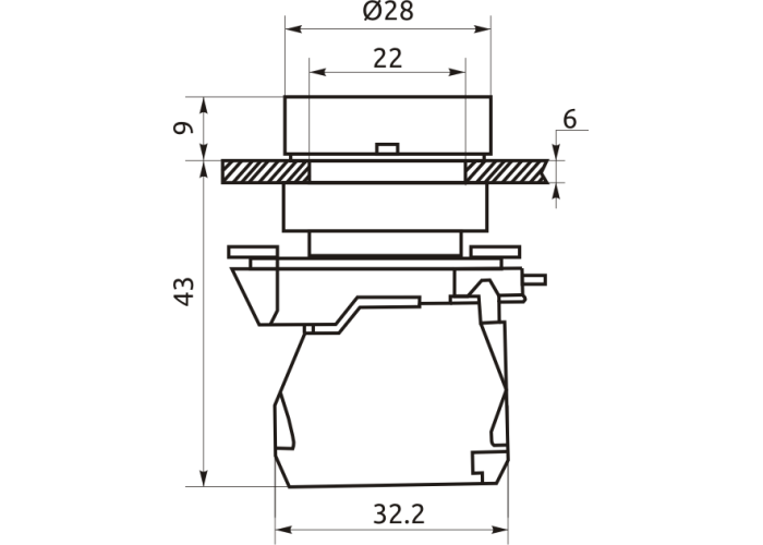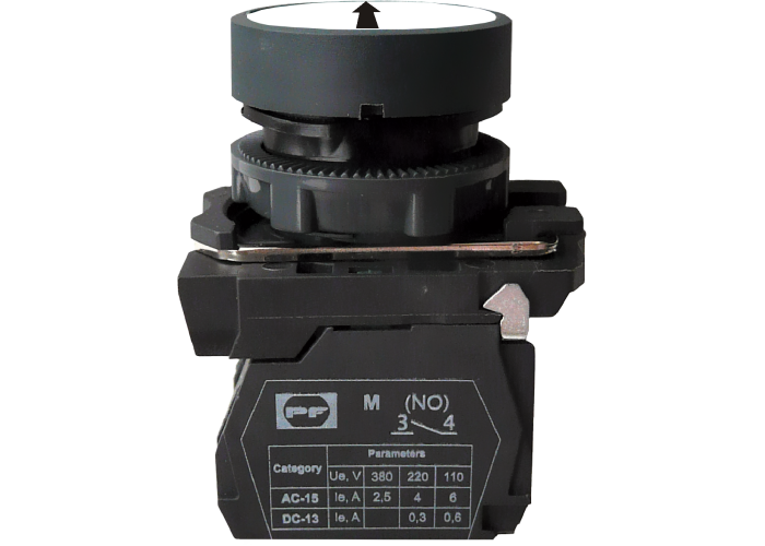 Вимикач кнопковий FP потайний натискний штовхач, без фіксації. Колір: білий з маркуванням. Використовується в промислових розподільчих пристроях, пультах керування промисловим обладнанням, а також для керування технологічними процесами і в системах автоматизації.