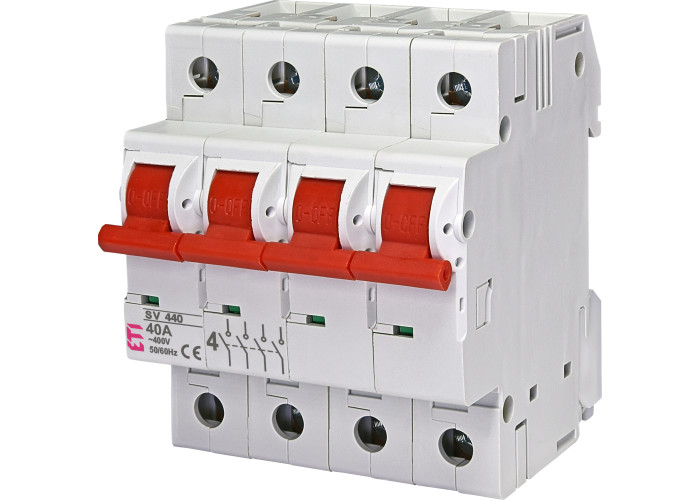 Вимикачі навантаження SV застосовуються для комутації електричних ланцюгів з струмом до 125 А. Вони мають просту і надійну конструкцію. Дані пристрої встановлюються в розподільні щити в якості головного вимикача, а також призначені для включення / відключення окремих ліній. Оскільки в складі вимикача навантаження відсутні будь-якого виду расцепители, то захист по струму короткого замикання і тепловому току вони не забезпечують. Можливо пломбування в положенні (ON) і (OFF).